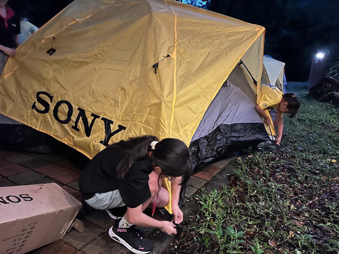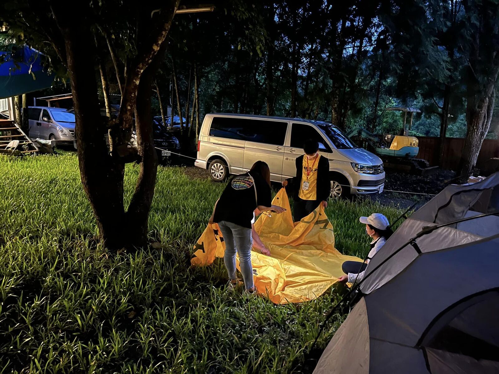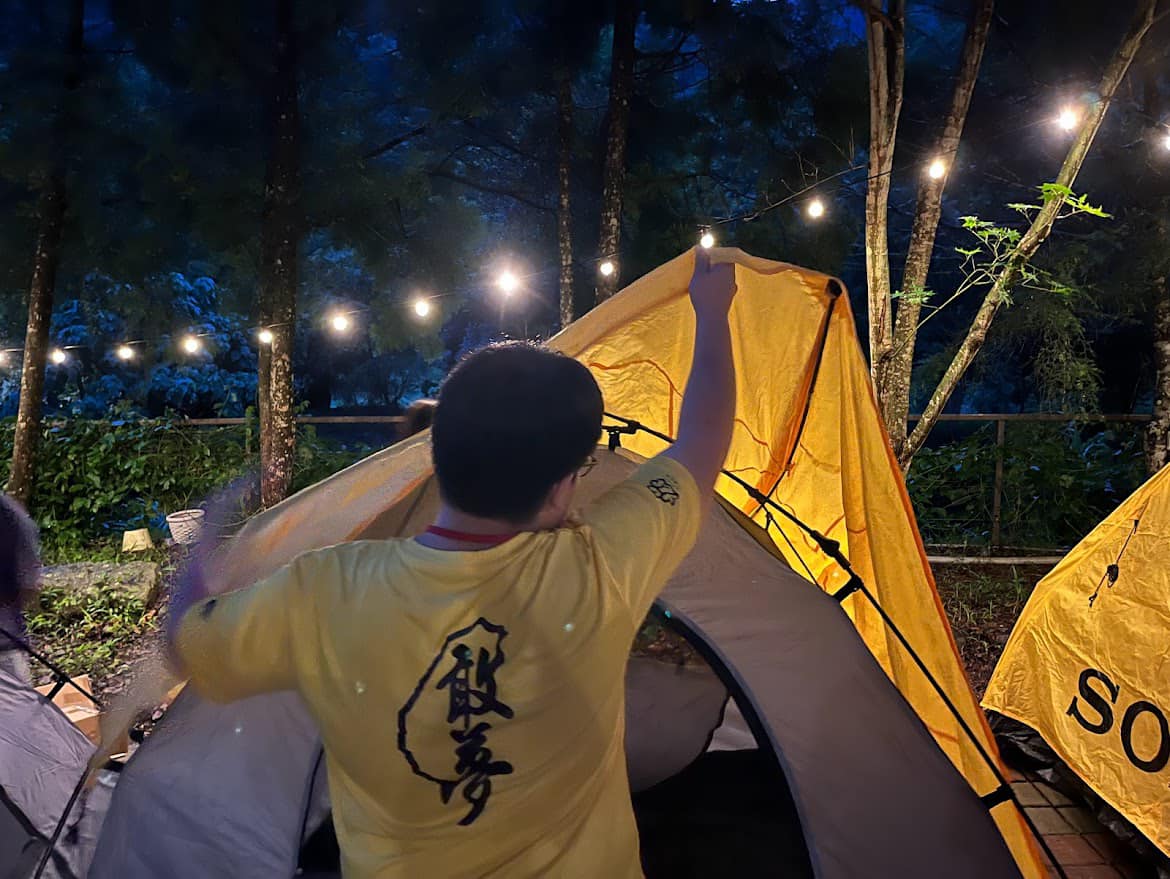 大家同心協力把帳篷搭起!