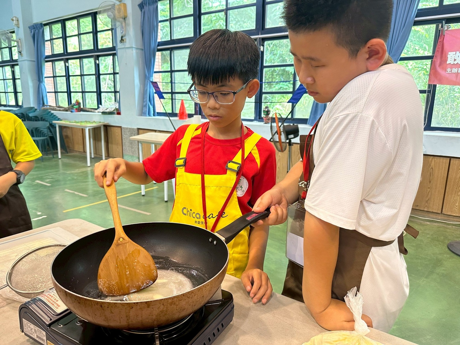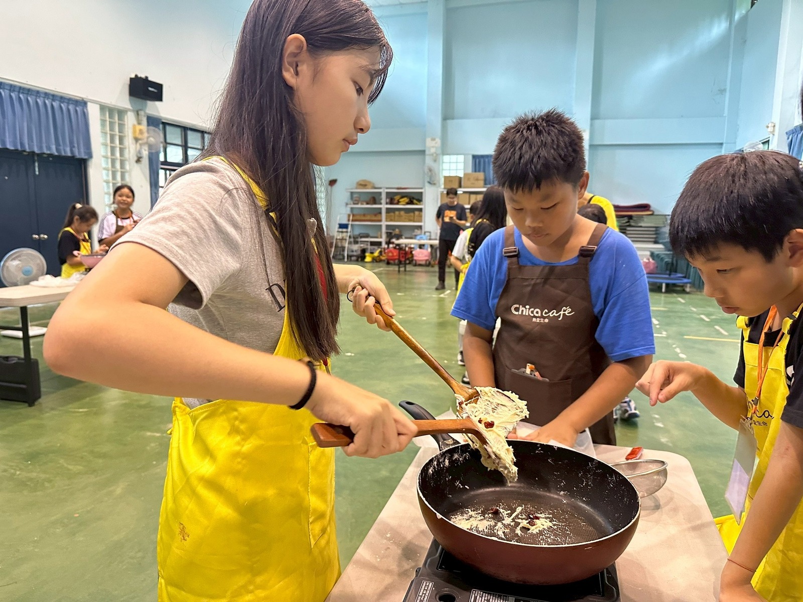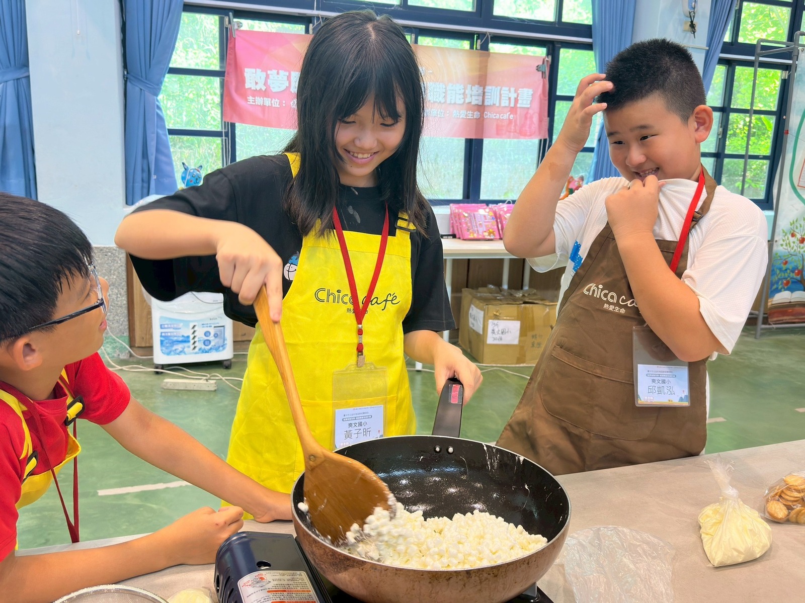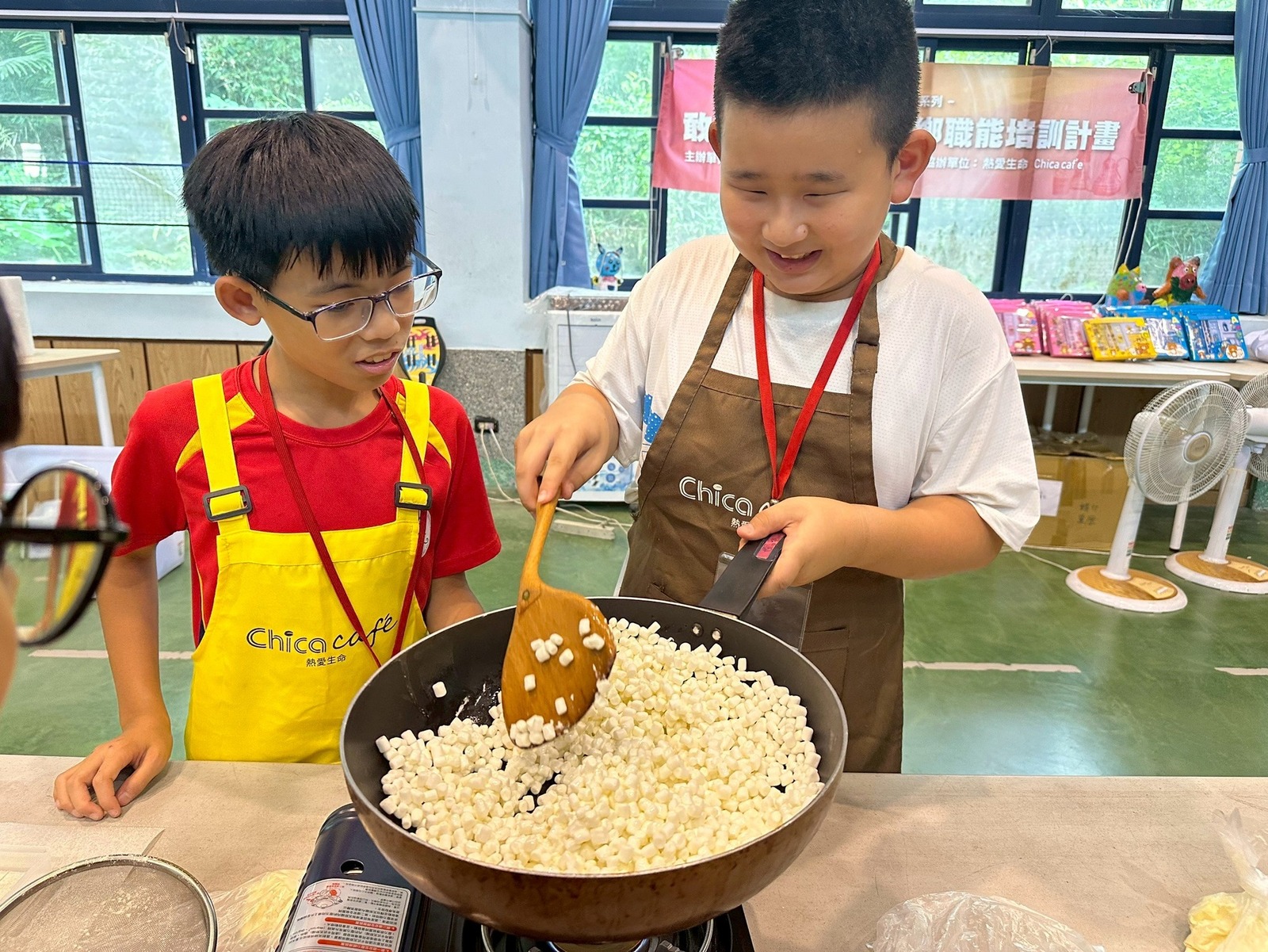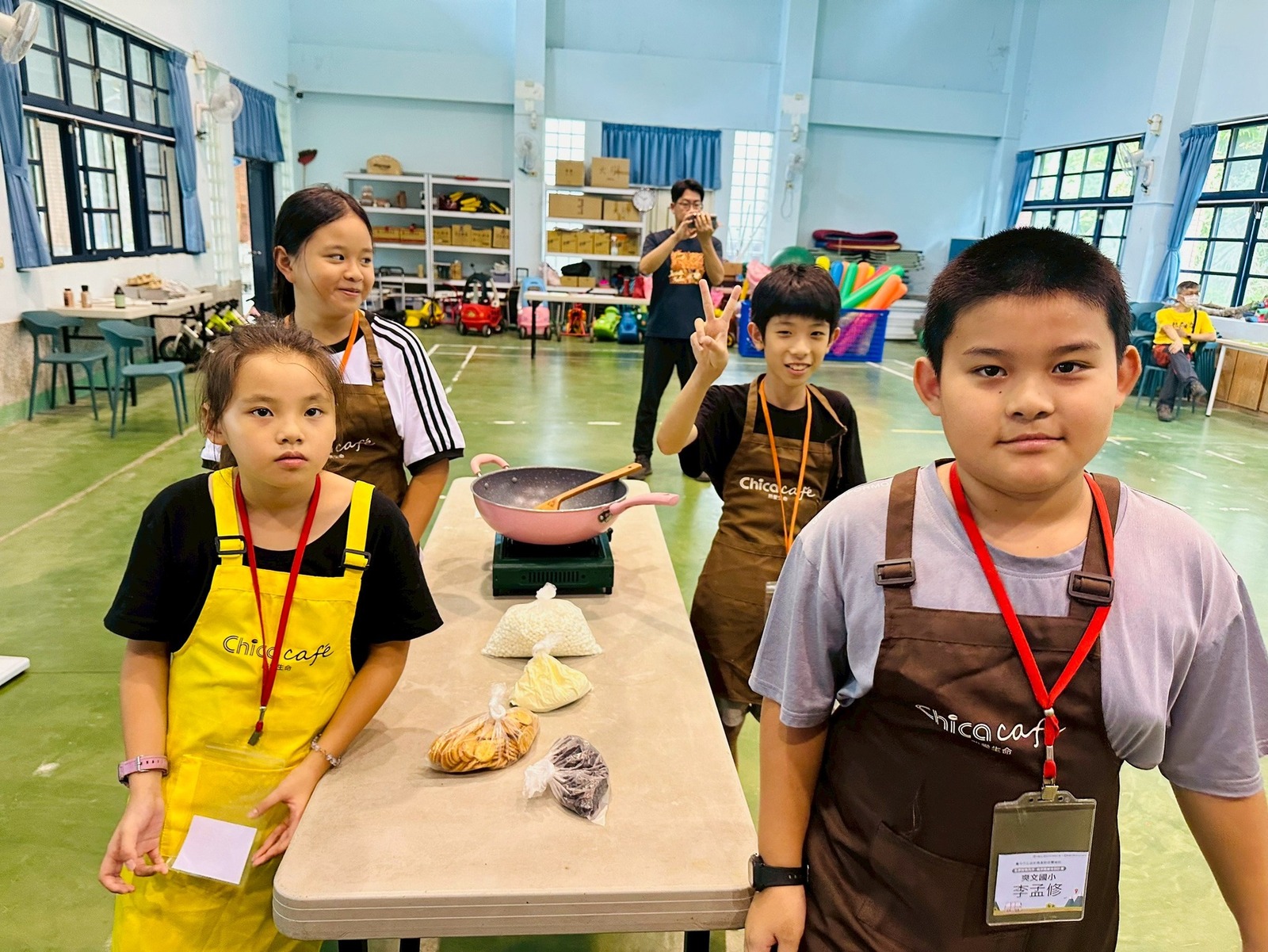 孩子們的笑容就像陽光一樣燦爛,期待著今天的手作體驗。我們先從雪Q餅開始動手做起,從下料、攪拌、壓模到包裝,每一個步驟都考驗著小朋友的專注力與團隊合作。當香氣瀰漫整個活動中心、甜甜的雪Q餅完成時,那份成就感比糖還甜。![]()