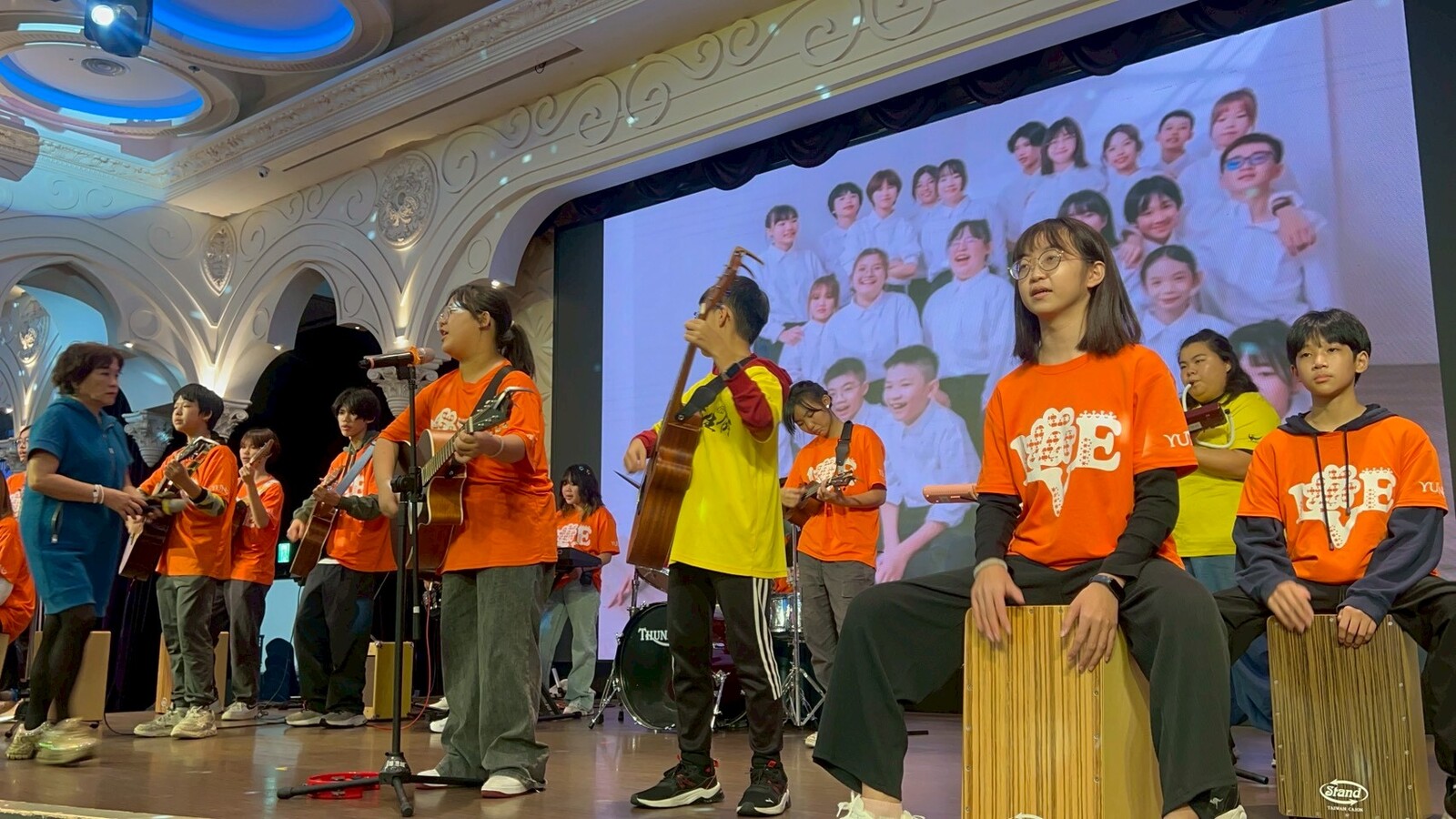 孩子們穿梭在會場中,用音樂把喜悅帶給所有人。