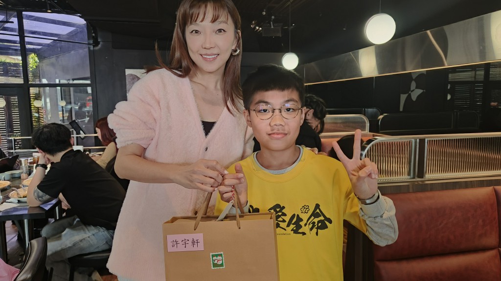 由 台中至善扶輪社現任社長 Runway 親手交到孩子們手中。