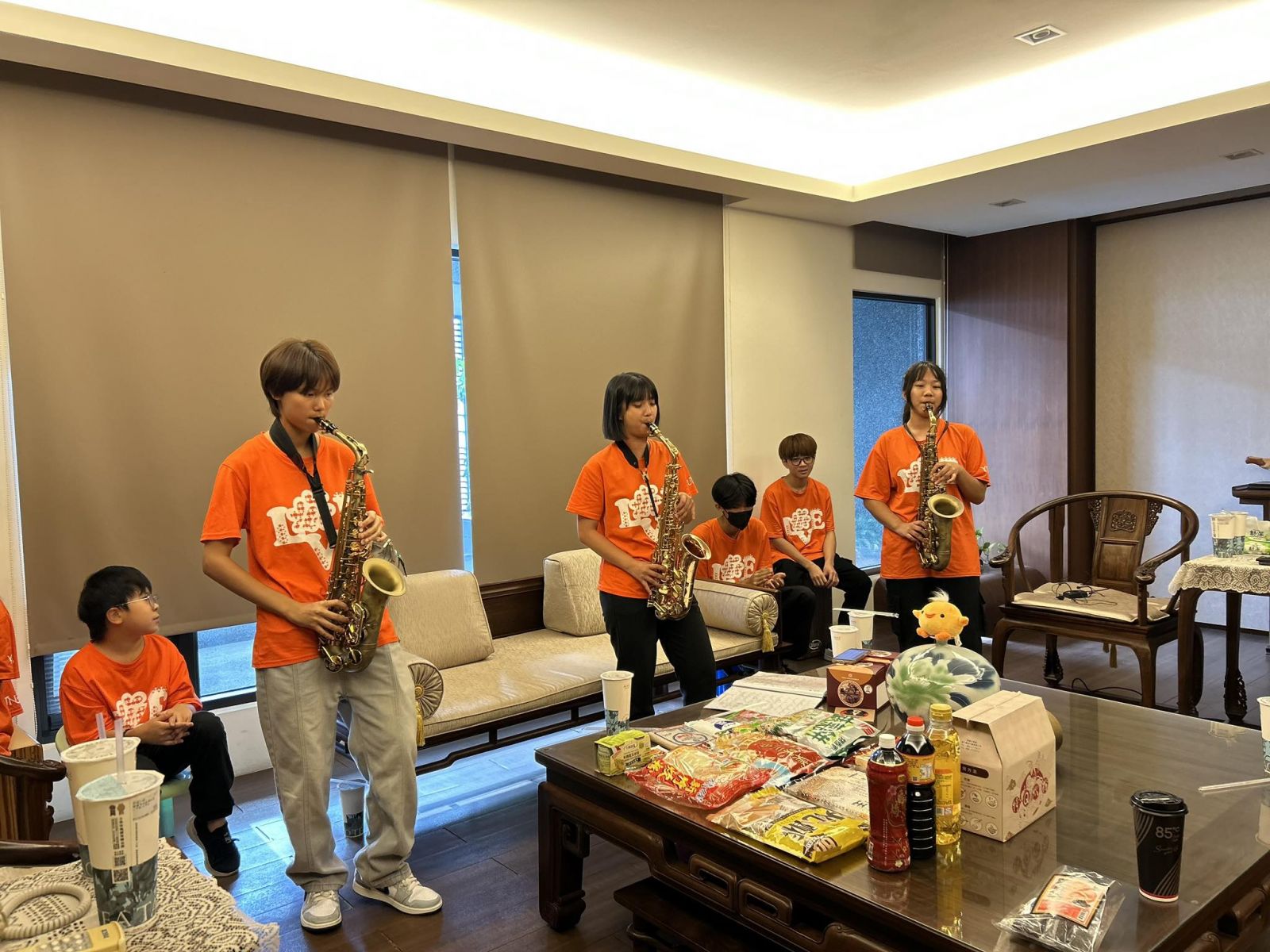 特別的是,師父認養的女兒怡文,也在現場吹奏了薩克斯風曲〈當你老了〉,將滿滿的感恩化作音符,獻給多年來持續資助與關懷她的師父。那一刻,溫暖與感動在空氣中流動。