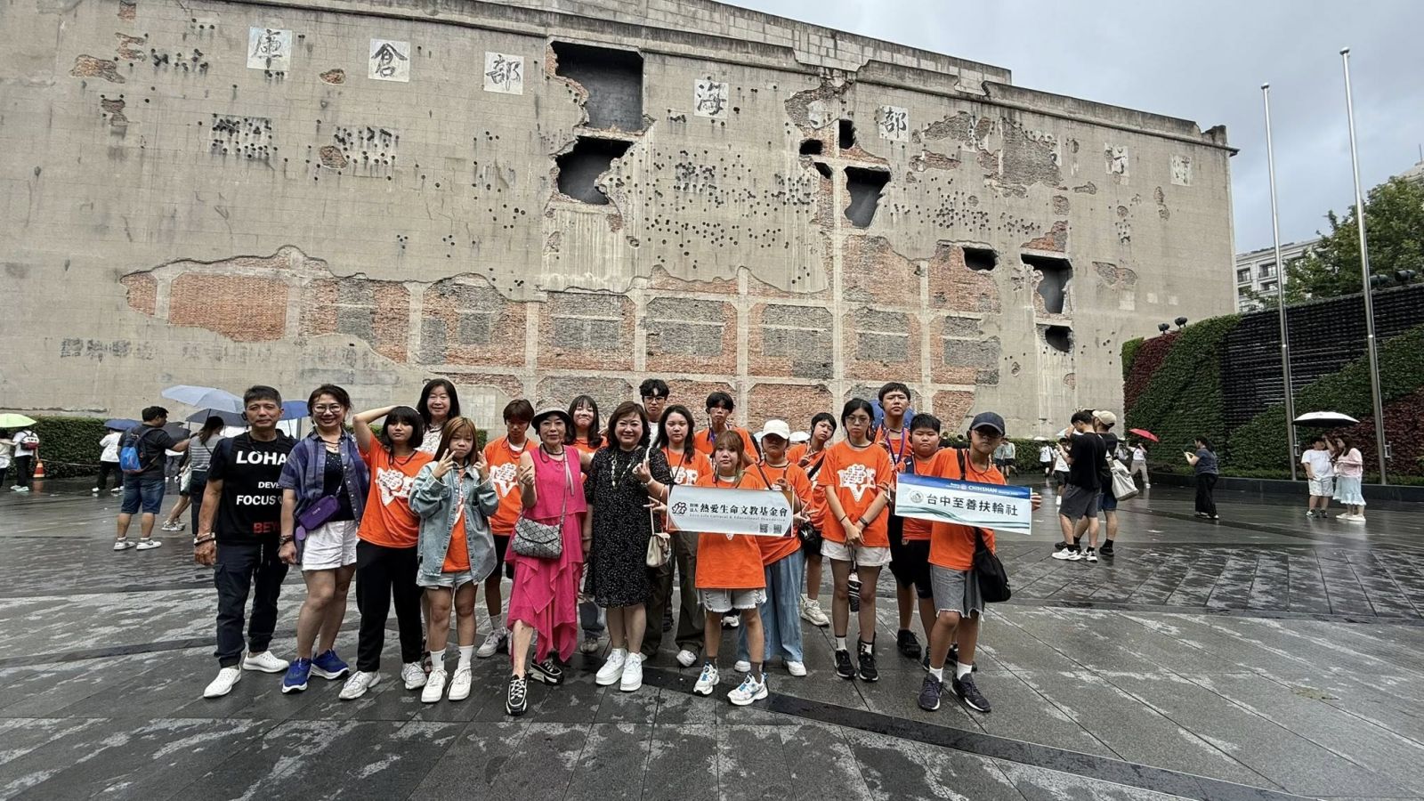 歷史重量:站在四行倉庫的彈孔牆前,這場震撼的生命教育課,讓孩子們在雨中學會珍惜當下的和平。