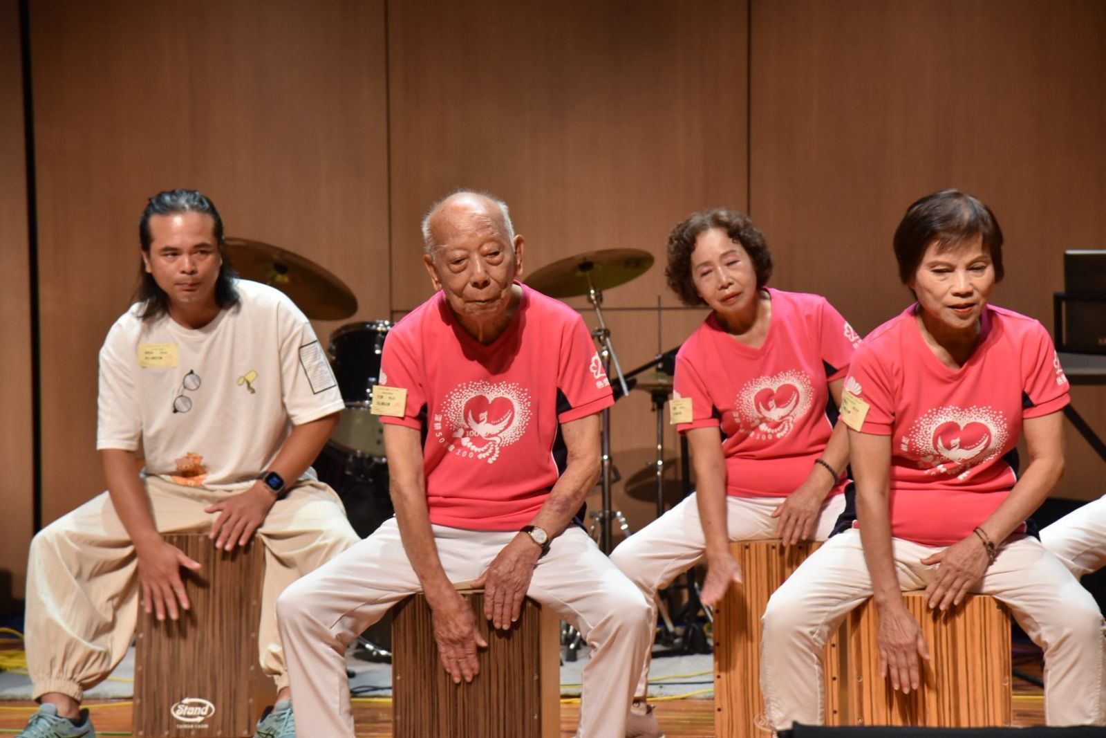 最令人動容的是,台中婦幼社區關懷據點的長輩們以木箱鼓奏出震撼人心的節奏,而全場合唱〈來去台東〉時,102歲李伯伯的投入參與,更讓觀眾感受世代相繫的力量與溫暖。