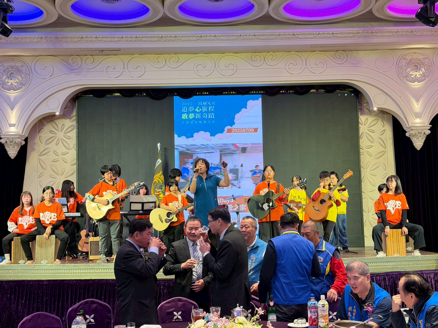 今天,他們又做到了。演出時,每一桌的叔叔阿姨都拿起手機拍攝、鼓掌、點頭稱讚;孩子們穿梭在會場中,用音樂把喜悅帶給所有人。