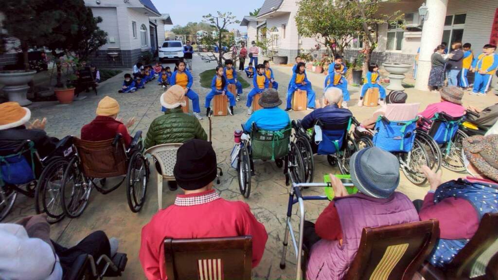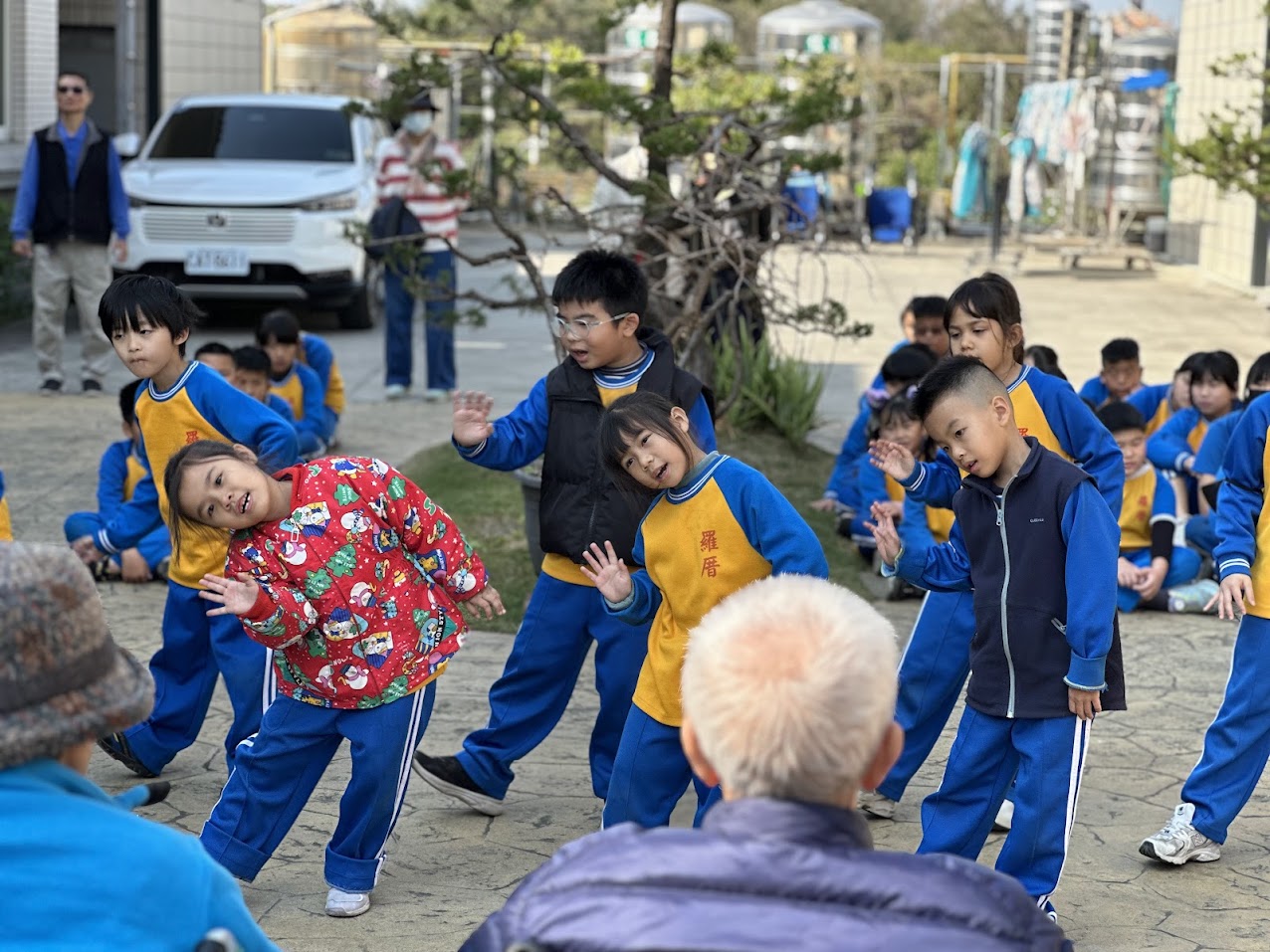 羅厝國小去年一月安排同樣的服務學習,希望維持與社區機構永續的夥伴關係。在所有教職員協力指導與安排下,全校6個班表演12個節目,有木箱鼓、直笛、小提琴、流行舞蹈、閩南語歌謠等熱鬧又豐富的演出,讓長輩在過年前歡樂慶新年。