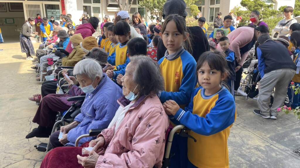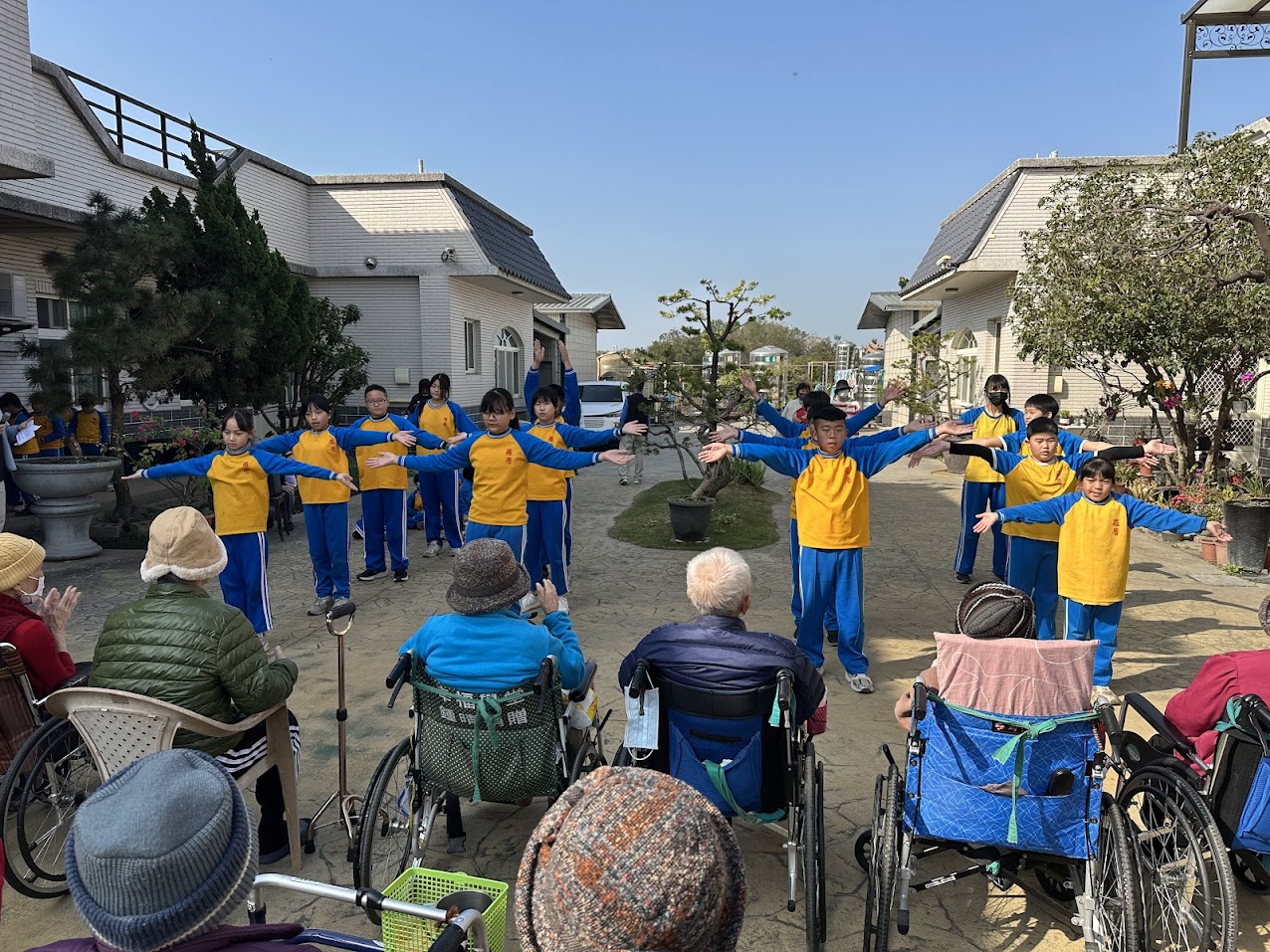 「阿嬤!這樣抓龍會不會太大力?」今天早上在埔心鄉羅厝友福長期照顧中心,有一群來自羅厝國小的小朋友幫阿公阿嬤搥背按摩。在學期末最後一天,羅厝國小全校學生走出教室、走入社區,到鄰近的安養機構服務學習,將這學期所學的才藝和學習成果展現給阿公阿嬤觀賞,現場所有人掌聲不停、笑聲不斷,讓長輩心情愉悅,有益健康。