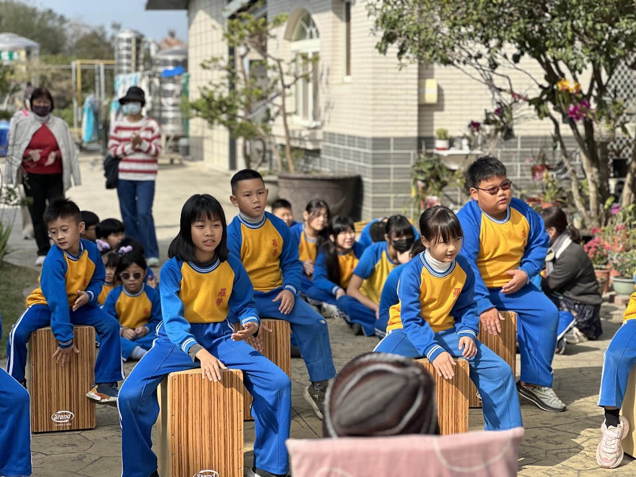 到場關心長輩並給小朋友鼓勵的有彰化縣政府秘書詹秀貞,來自台中市的熱愛生命文教基金會方嘉綺執行長及大中華婦幼關懷成長協會朱美蓉理事長。透過方執行長的引薦,學校獲得台中至善扶輪社贊助10顆木箱鼓。也因員林南區扶輪社贊助指導經費,順利成立社團,孩子們才有機會學到這項方便帶著走的樂器技能。