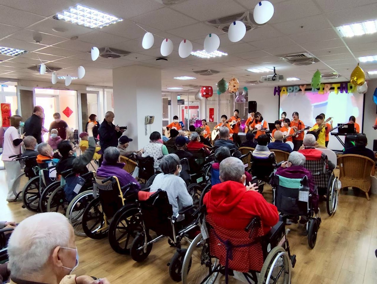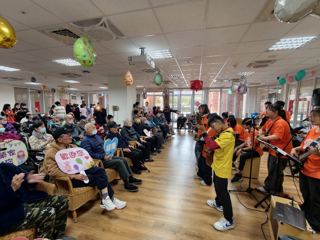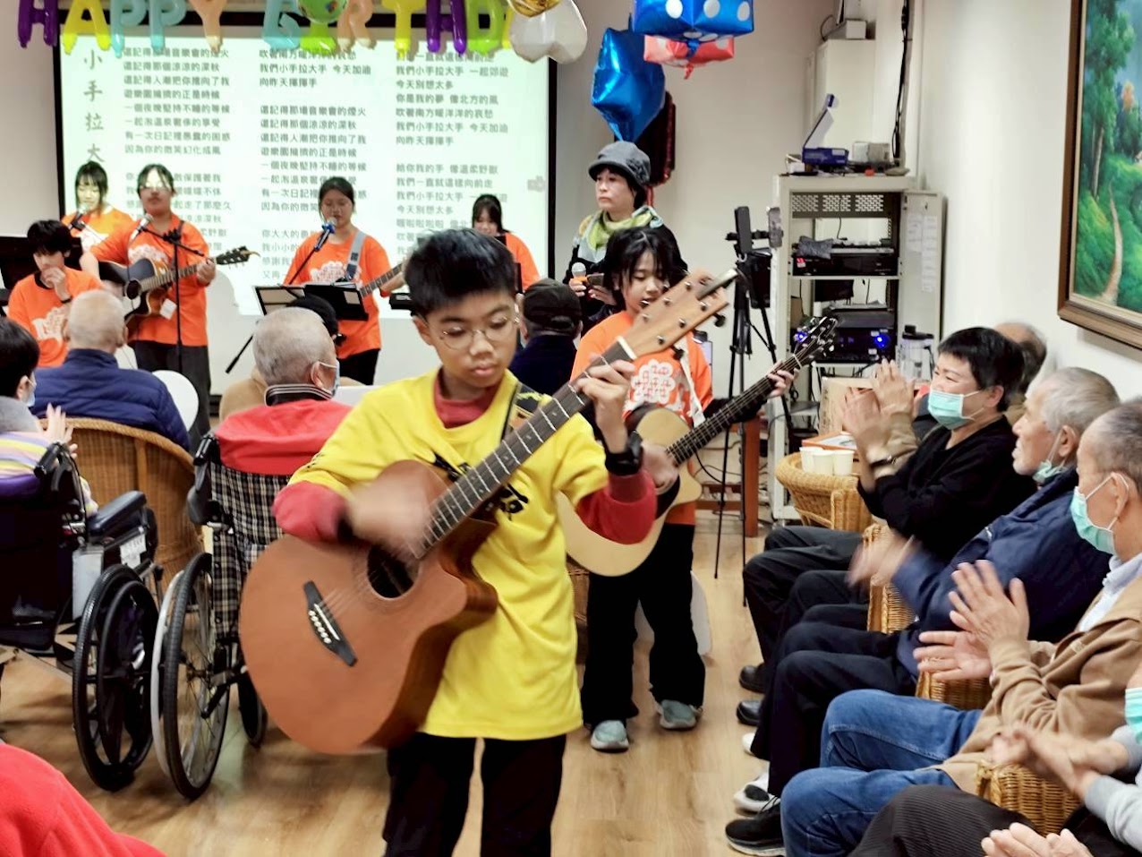 活動現場,孩子們精心準備多首歌曲與樂器演出,包括吉他彈奏、薩克斯風演奏等,悠揚的旋律在空間中流轉,長輩們專注聆聽,不時隨著音樂節奏輕輕律動,臉上洋溢著溫暖笑容,現場氣氛溫馨感人。
