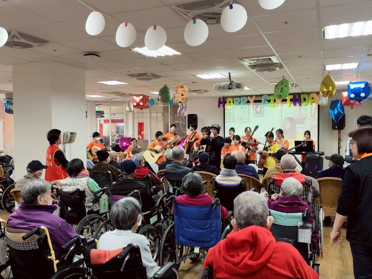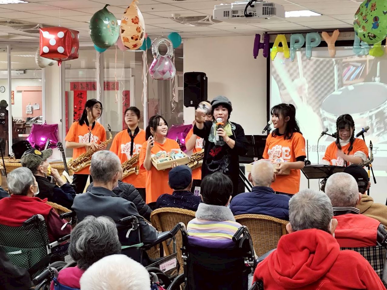 活動現場,孩子們精心準備多首歌曲與樂器演出,包括吉他彈奏、薩克斯風演奏等,悠揚的旋律在空間中流轉,長輩們專注聆聽,不時隨著音樂節奏輕輕律動,臉上洋溢著溫暖笑容,現場氣氛溫馨感人。
