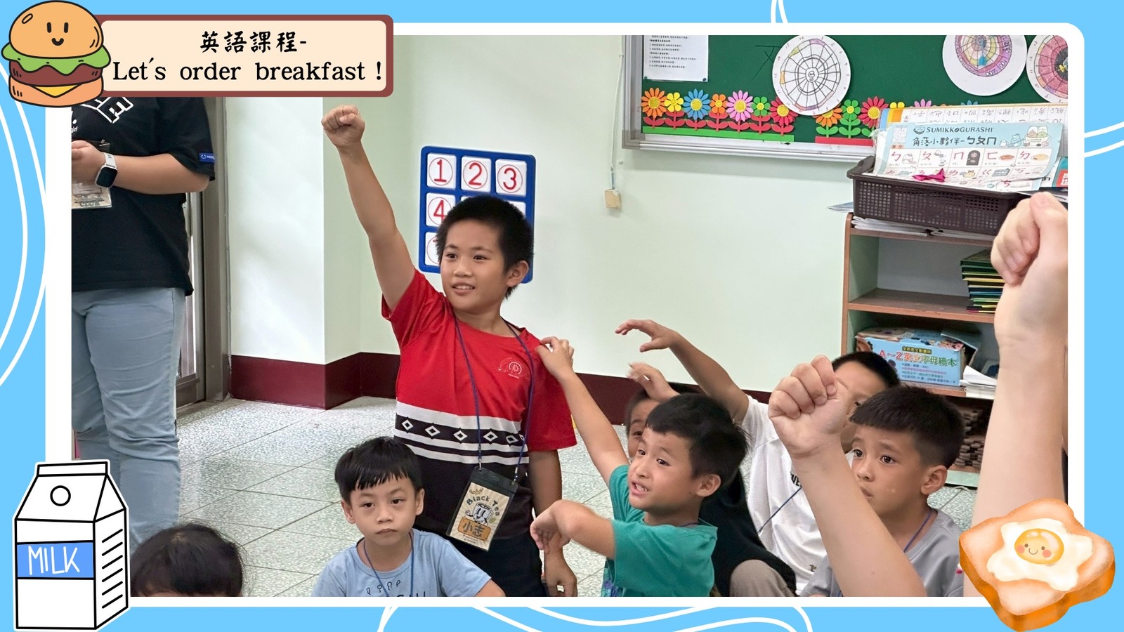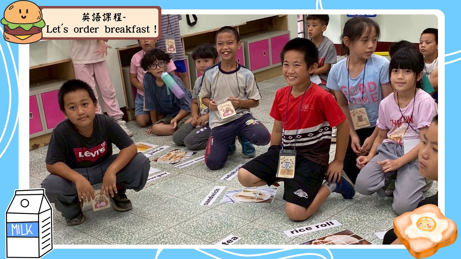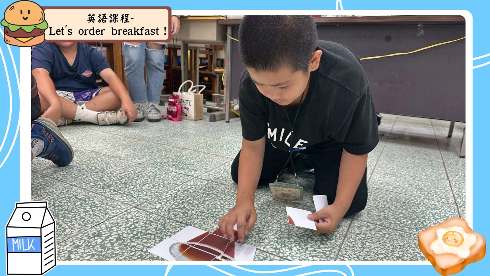 孩子們動手拼早餐拼圖,學習 toast、steamed bun、milk tea 等實用單字,