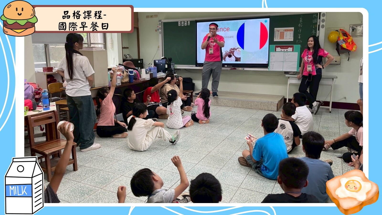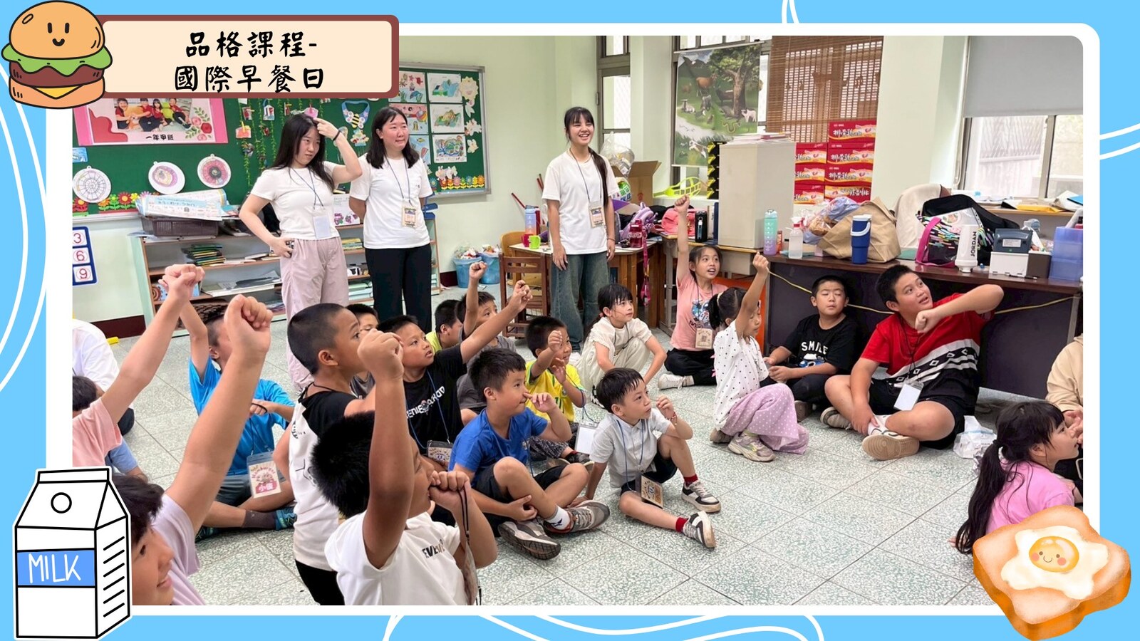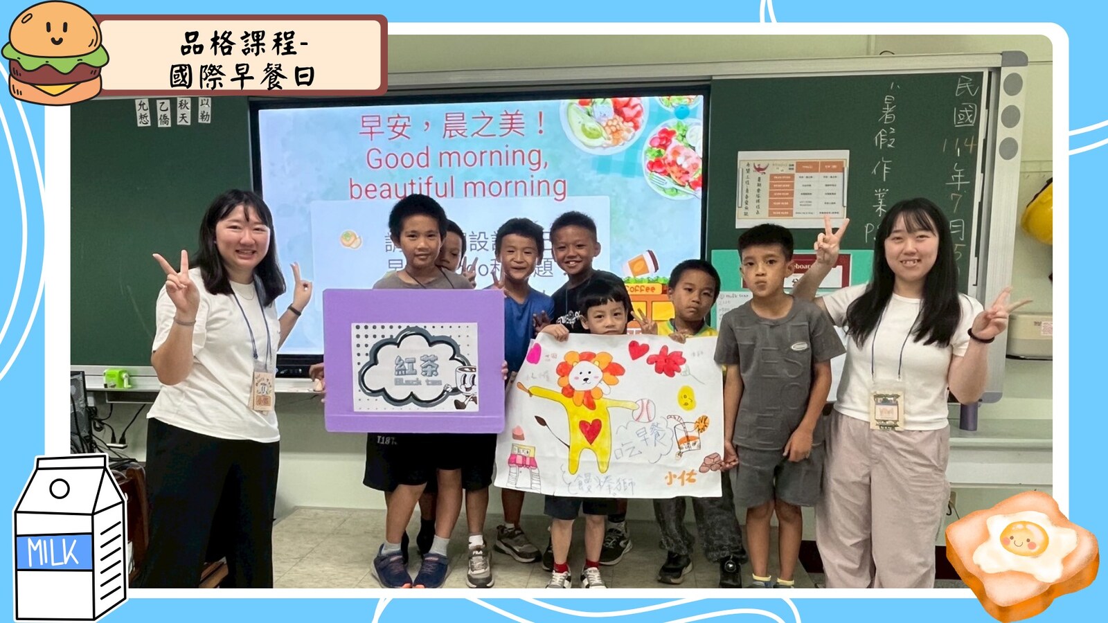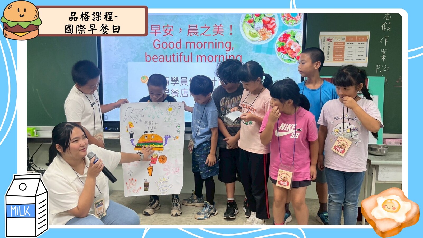 接著,我們進入了《國際早餐日》的課程,孩子們不僅學習了來自不同國家的早餐文化,還認識了各國早餐的英文名稱,如croissant和pancake。更重要的是,他們學會了尊重不同文化的飲食習慣,並發揮創意設計出屬於自己組別的早餐店logo!每一組的創意都讓人驚喜,展現了孩子們的無限潛能