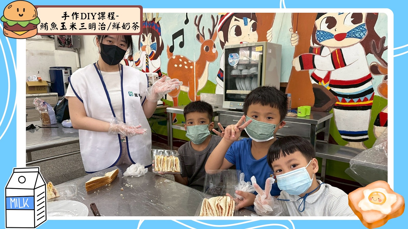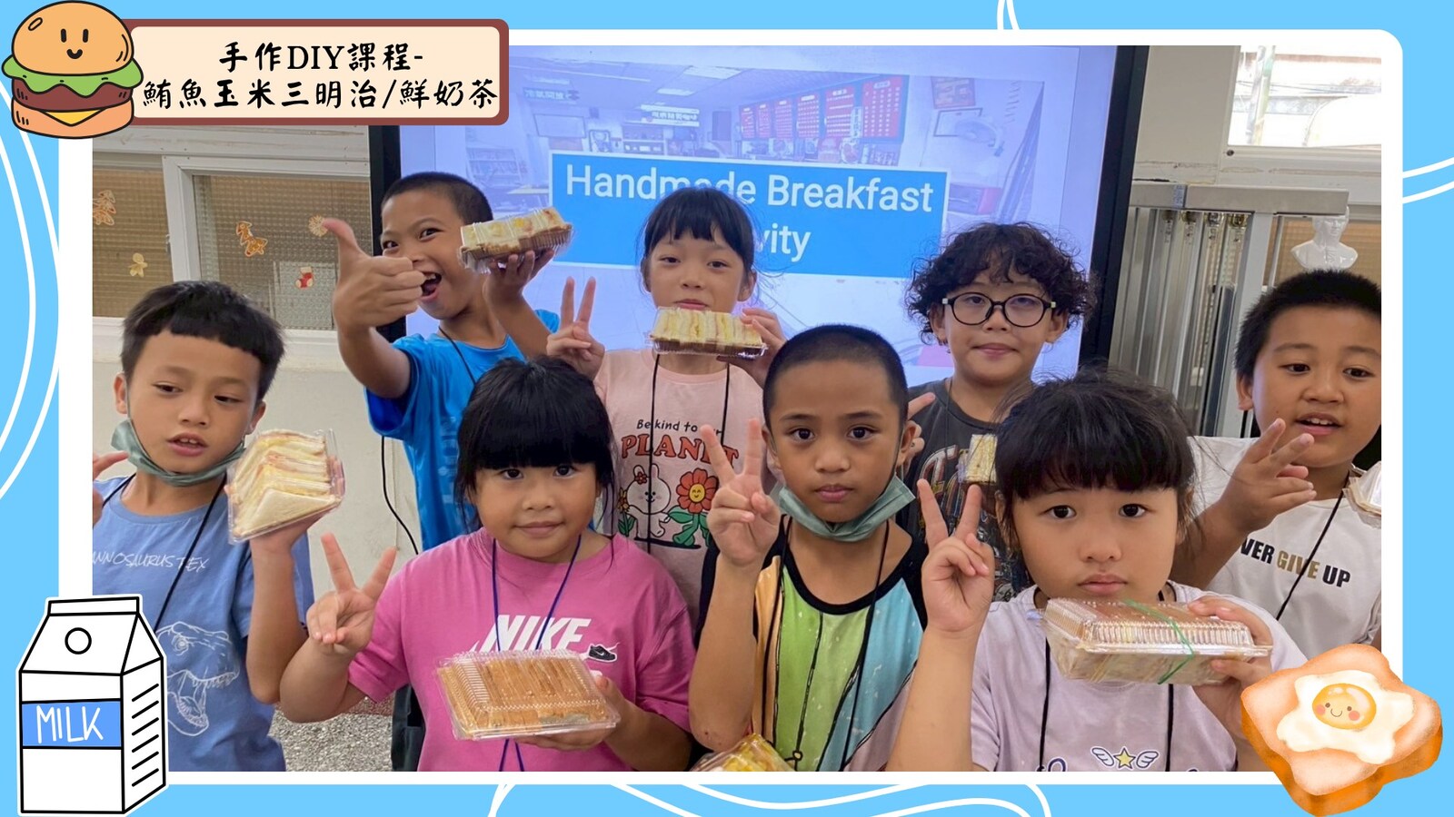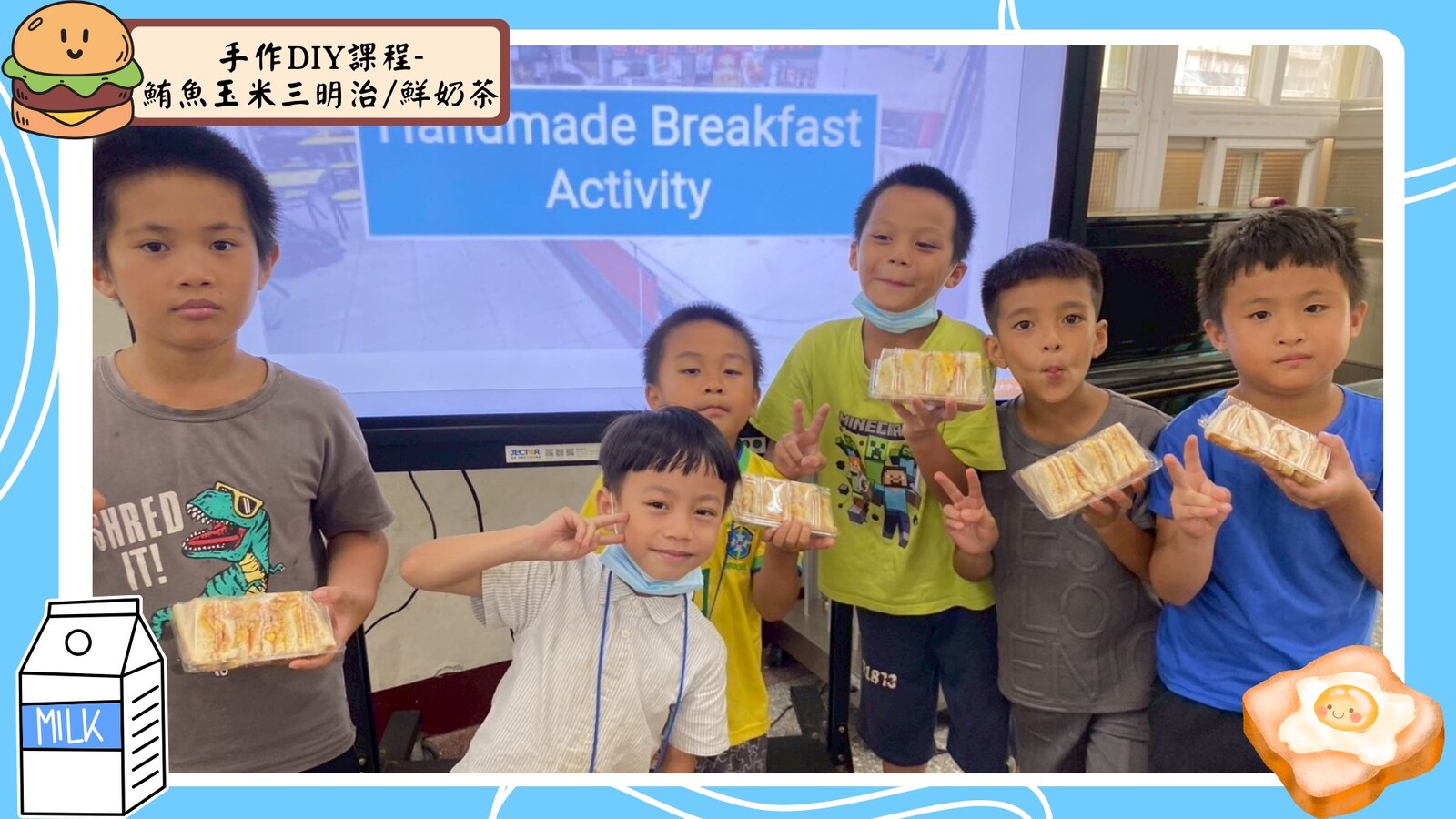 下午的手作時間更是讓人期待,我們親手製作了「鮪魚蛋玉米三明治」和「鮮奶茶」。香氣四溢,歡笑不斷,看到每位孩子都能創造出屬於自己的早餐作品,臉上洋溢著滿足的笑容,讓人感受到他們的成就感!