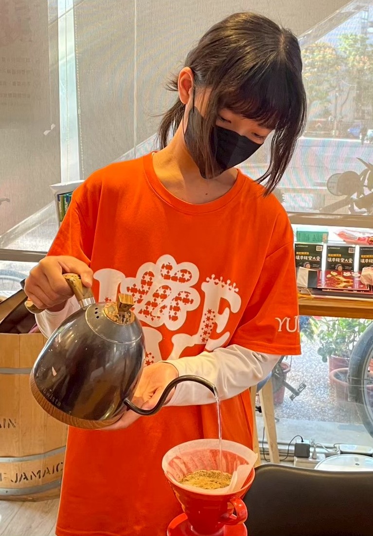 而在咖啡課程中,我們看見了她細膩的一面。才學習幾次,她就能把每個細節做好,也因此得到老師的肯定。那一抹靦腆卻帶著自信的笑容,讓人特別感動。![]()