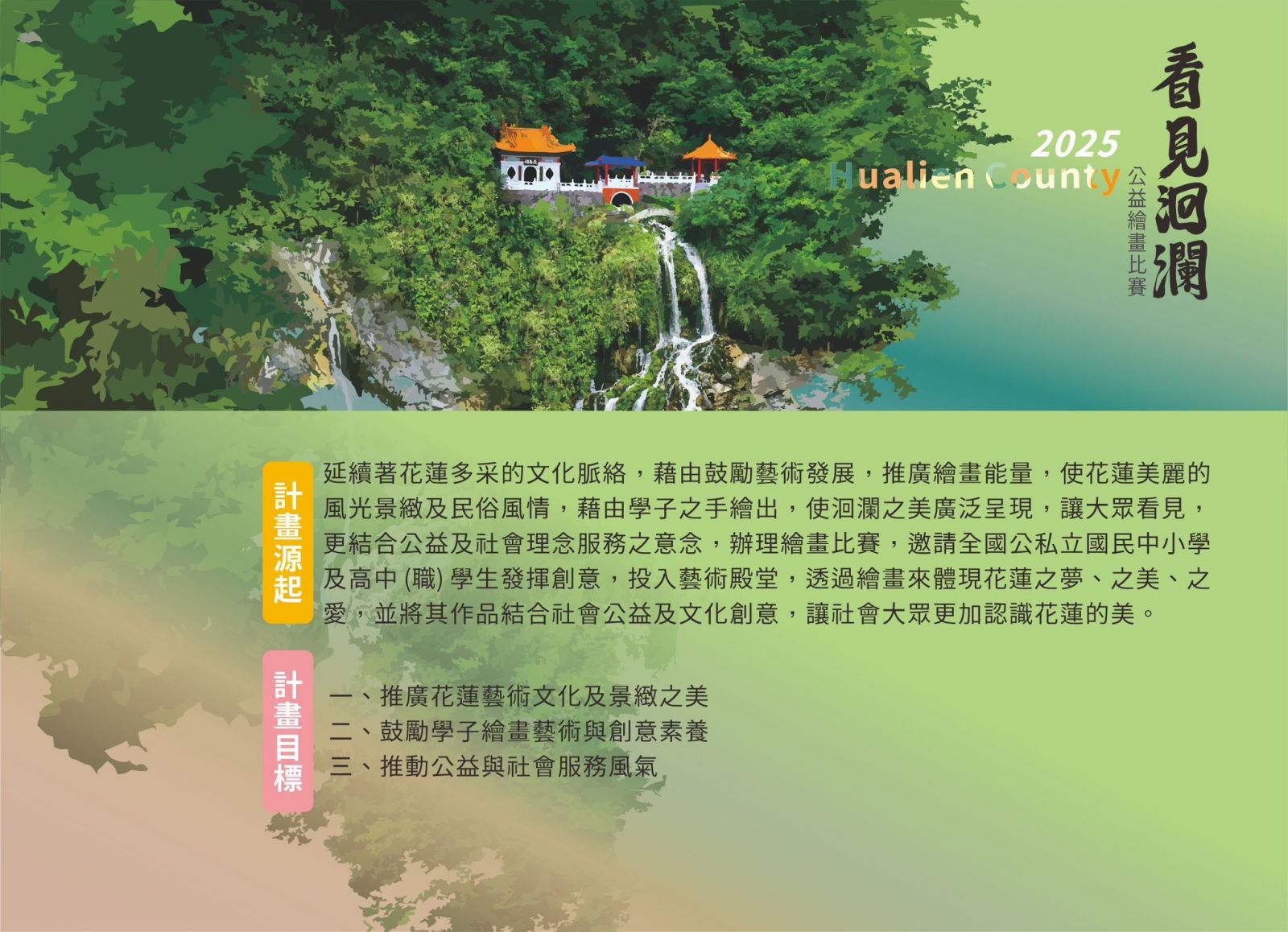 本次展出由財團法人熱愛生命文教基金會策劃辦理,旨為延續花蓮多元豐富的文化脈絡,並讓藝術教育向下扎根,冀望透過「看見洄瀾公益繪畫比賽」,鼓勵全國~國中、國小及高中(職)學子,以畫筆描繪花蓮的自然景緻、人文風情與在地故事,讓洄瀾之美被更多人看見。