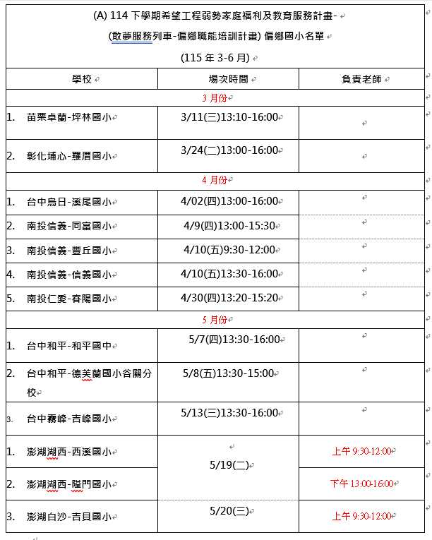 115年3~6月【希望工程|偏鄉職能培訓】活動時間如下: